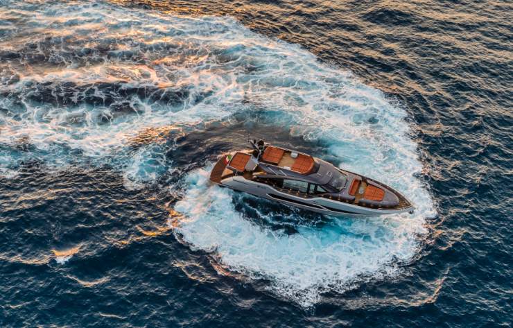 In mare, diverse prove di testate internazionali confermano l’indole “superfast” del modello: si riportano picchi prossimi a 57–58 nodi in assetti leggeri e condizioni favorevoli, con una timoneria intuitiva e reattiva anche alle alte andature. La combinazione tra tripla V12 e waterjet riduce pescaggio e inerzie sulle manovre, consentendo deviazioni di rotta rapide e traiettorie pulite in virata, con ridotta tendenza al cavitarsi.