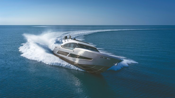L’AB100 rappresenta una delle interpretazioni più radicali del concetto di sport-yacht planante nella fascia dei trenta metri. È un progetto che nasce da un’idea semplice e al tempo stesso ambiziosa: coniugare la rapidità di un motoscafo ad alte prestazioni con l’abitabilità e la qualità percepita di un superyacht contemporaneo. La soluzione ingegneristica individuata dal cantiere è una combinazione di massa contenuta, carena ottimizzata per alte andature e propulsione a waterjet in configurazione tripla, orchestrata da un’architettura di bordo che tutela sia la sicurezza sia il comfort, anche quando l’indicatore dei nodi supera soglie che, su questa taglia, appartengono a pochissime unità.