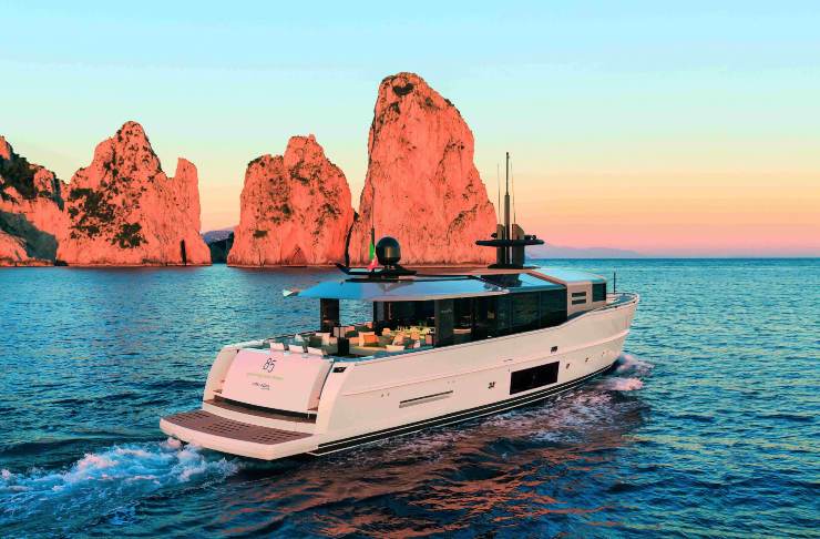 L’Arcadia A85 è molto più di un superyacht di 26 metri: è un manifesto progettuale che ha ridefinito l’idea stessa di motoryacht semi-dislocante, coniugando efficienza energetica, comfort abitativo e una forte identità stilistica. La sua silhouette squadrata, la sovrastruttura completamente vetrata e i pannelli solari integrati nella tuga lo rendono immediatamente riconoscibile in qualsiasi marina del Mediterraneo.