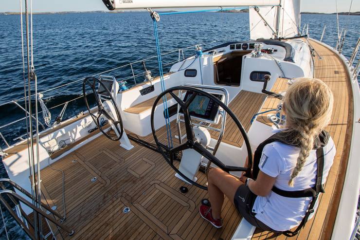 La cucina in configurazione a “J” è descritta nelle prove come sicura e ben contrastata, con appoggi utili durante la navigazione. L’osservazione tipica dei tester riguarda la logica frigorifero: in assetto crociera intenso, una seconda unità (opzionale) è spesso consigliabile per aumentare la vera autonomia alimentare. La stazione di navigazione, dal canto suo, rientra nella tradizione scandinava: un luogo operativo, non un semplice piano d’appoggio, con illuminazione e predisposizioni pensate per turni di guardia reali.