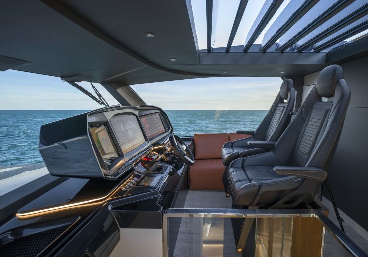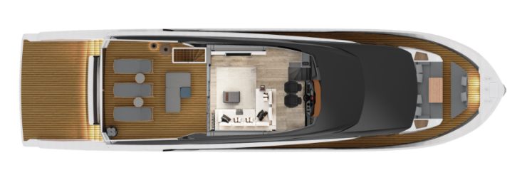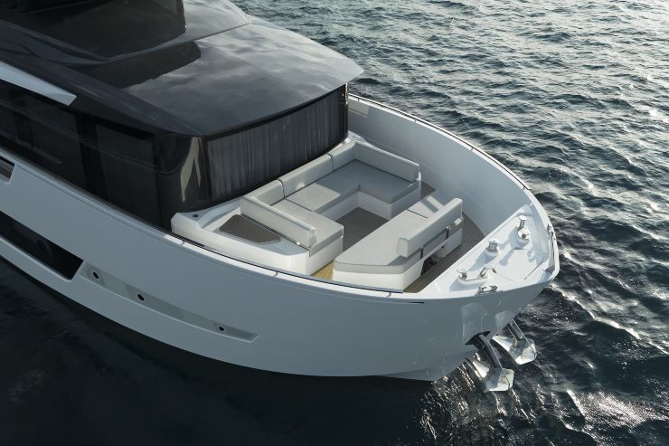 • Abitabilità leader di classe con salone a tutta altezza, beach club espandibile e flybridge vivibile come una terrazza.