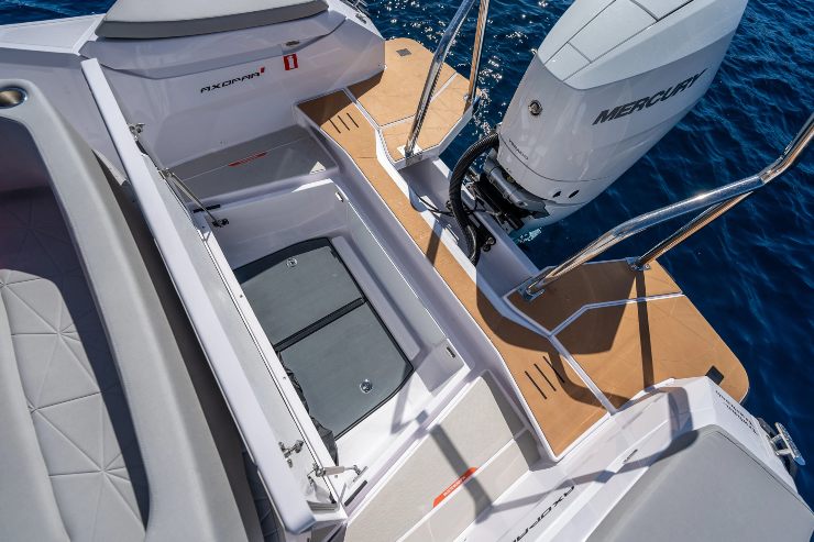 La zona di poppa è forse la massima espressione della modularità Axopar. Il 29 Sun Top può essere configurato con: