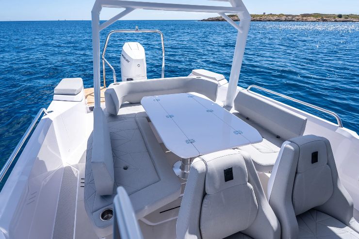 Queste dimensioni consentono all’imbarcazione di rientrare in molti mercati nel segmento dei natanti non immatricolati, mantenendo al contempo un volume di coperta e una fruibilità che richiamano modelli più grandi.