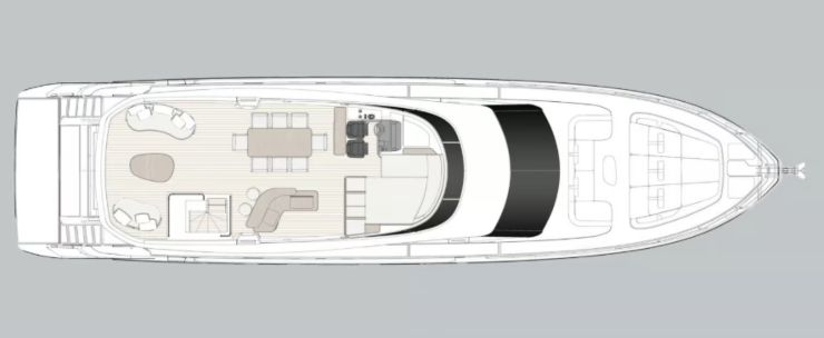 Il vantaggio competitivo dell’Azimut Fly 82 risiede nella scelta IPS tripla su questa taglia, nella riduzione dei pesi in sovrastruttura e in una progettazione volumetrica molto efficace per vita a bordo e charter.