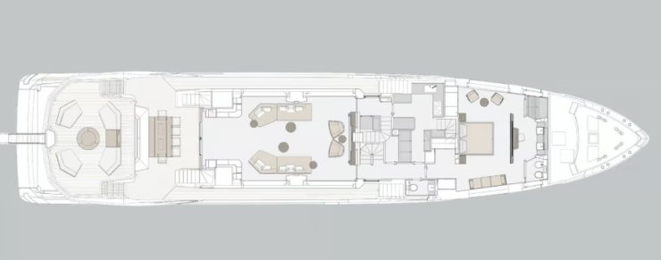 La vita a bordo del Trideck si costruisce per strati: beach club, area dining esterna, saloni interni ed esterni, terrazze superiori, zona prendisole e spazi intimi per la lettura o la conversazione. Le differenze di quota e i tagli visivi permettono di vivere il mare in continuità, con percorsi che non interferiscono con il servizio. La climatizzazione multi-zona con controllo di umidità e la qualità dell’isolamento acustico contribuiscono a un comfort che rimane costante dalla mattina al dopocena.