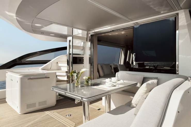 - Serbatoio carburante ~4.000 l: autonomia inferiore rispetto ad alcuni rivali “long-range” (es. Princess S80), pur adeguata al profilo d’uso mediterraneo.