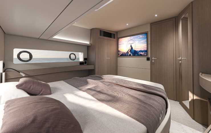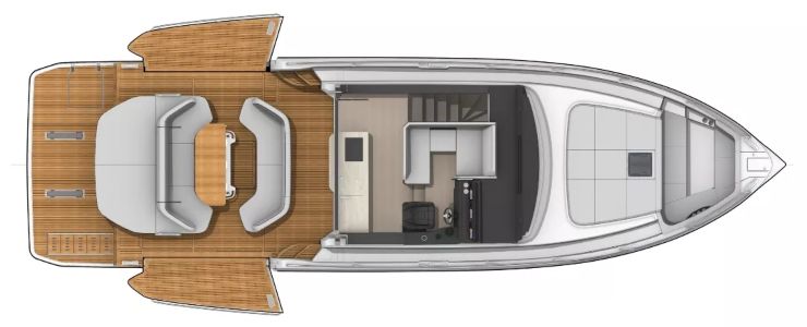 Il risultato è uno sport-cruiser moderno che cerca di coniugare prestazioni, comfort acustico, efficienza e una vita a bordo costruita su un concetto chiave: la continuità tra pozzetto e salone, con la coperta principale impostata come un grande “ambiente unico” modulabile. È una barca che si rivolge a un armatore che vuole governare in prima persona, ma pretende anche spazi, luce e finiture da vera fascia premium.