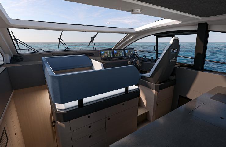 Uno degli elementi più distintivi è il sistema Ship Control: una piattaforma che permette di gestire e monitorare funzioni chiave (livelli, climatizzazione, luci di navigazione, illuminazione, impianto audio) dalla postazione di guida o da un dispositivo connesso via Wi-Fi. In pratica, il comandante lavora con un’interfaccia più “logica” e meno frammentata: meno pannelli sparsi, più controllo d’insieme, maggiore rapidità nel check pre-partenza e nel troubleshooting. È un vantaggio enorme anche per la sicurezza operativa: la barca diventa più prevedibile, e quindi più facile da condurre bene.