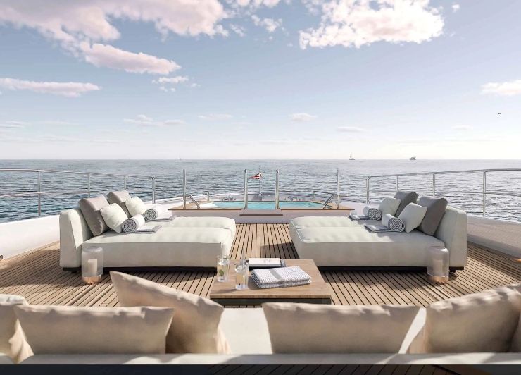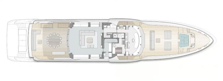 - Sun deck: superficie ampia e modulare per prendisole, zona bar, area wellness e predisposizioni idromassaggio.