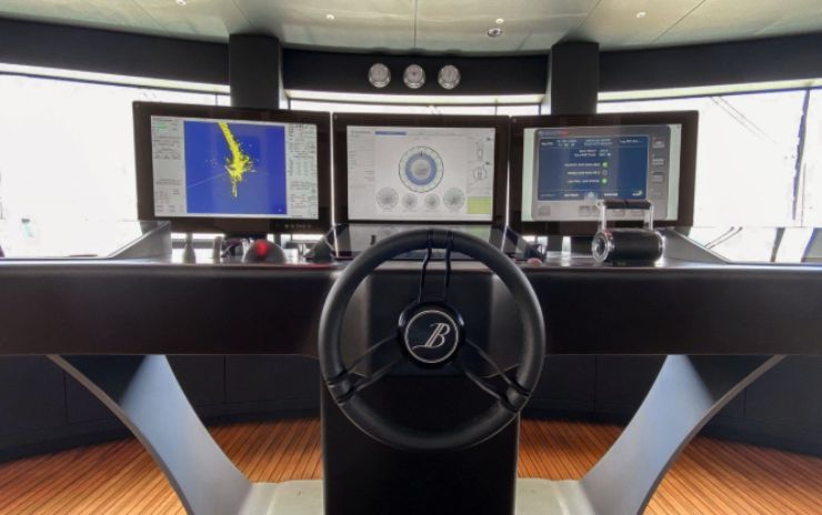 La plancia integra suite multifunzione con radar, ECDIS, AIS di classe professionale, ecoscandaglio, log, sensori vento e telemetria impianti. La logica HMI privilegia schermate contestuali per fasi (manovra, crociera, notturna, ancoraggio) e ridondanza degli input. L’automazione supervisiona serbatoi, pompe, gruppi elettrogeni, carichi di bordo, bilanciamenti e allarmi, con reportistica storica utile alla manutenzione predittiva.