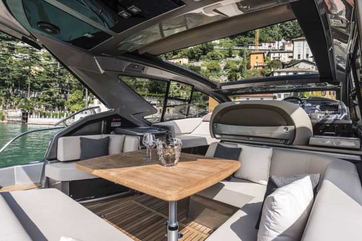 La sensazione complessiva è quella di una barca pensata per vivere molte ore a bordo, non solo per brevi uscite giornaliere: ogni dettaglio, dall’ampiezza dei divani alla praticità della cucina, punta alla fruibilità quotidiana.