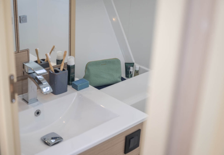 Da un punto di vista ergonomico, l’insieme è ben concepito: passaggi chiari, accessi comprensibili, altezze utili, mobilità naturale. È una barca che non impone movimenti innaturali e non costringe l’utente a continui compromessi fra bellezza e funzionalità.