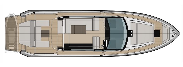 Il ponte comandi integra un glass cockpit multi-display con autopilota, joystick e funzione Dynamic Positioning (DPS/Skyhook). La domotica di bordo consente la gestione centralizzata di illuminazione, pompe, frigo, aria condizionata e tettuccio apribile (a seconda dell’allestimento). La sensoristica è declinata sullo stato motori, livelli, battery management e diagnostica predittiva fornita dai sistemi propulsivi.