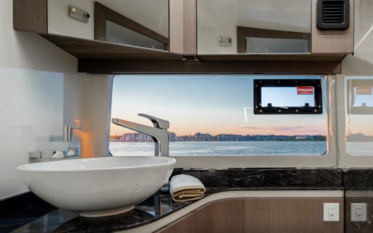È plausibile una costruzione in composito con approccio industriale avanzato, dove la differenza la fanno: incollaggi strutturali ben dimensionati, corretta ventilazione dei volumi chiusi, e un layout dei passaggi cavi che non penalizzi manutenzione e ispezionabilità. In barche così “feature-rich”, la vera qualità si misura spesso dopo due stagioni: cerniere che restano precise, ante che non si disallineano, moduli che non scricchiolano quando la barca lavora in mare formato.