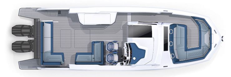 La seconda traiettoria riguarda il settore: la convergenza tra outboard ad alte prestazioni e layout da “floating lounge” è sempre più evidente. Le persone chiedono barche che siano al tempo stesso mezzo di trasporto veloce e spazio di esperienza. Il 375 GTO risponde con un’architettura che mette al centro il ponte principale e con una sottocoperta sufficiente per rendere credibile il weekend.
