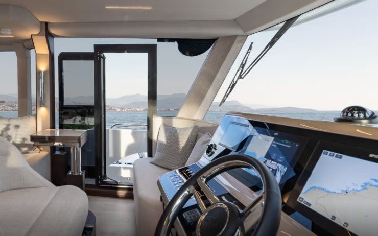 Su barche di questa taglia il tema non è solo la velocità, ma la facilità di gestione in porto. Indipendentemente dalla trasmissione scelta, oggi la differenza la fanno integrazioni come joystick, thruster proporzionati, logiche di controllo elettronico e un’ergonomia di plancia che consenta visibilità e accesso rapido alle aree di ormeggio.