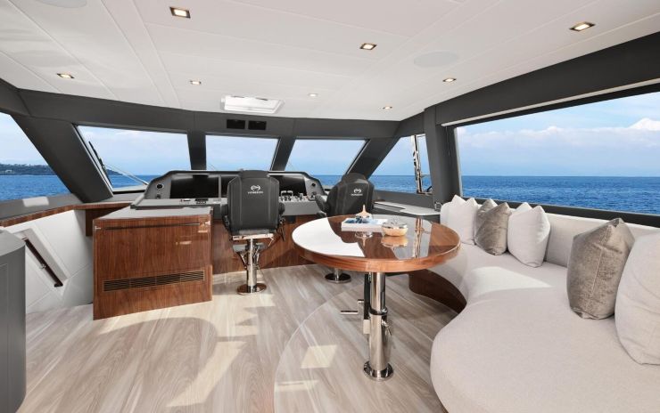 Questa flessibilità consente di tarare il progetto sulle condizioni climatiche prevalenti (Mediterraneo, Nord Europa, Australasia, Caraibi) e sulle abitudini dell’armatore, che può privilegiare la guida all’aperto oppure la comodità di un comando interno panoramico e protetto.