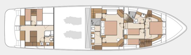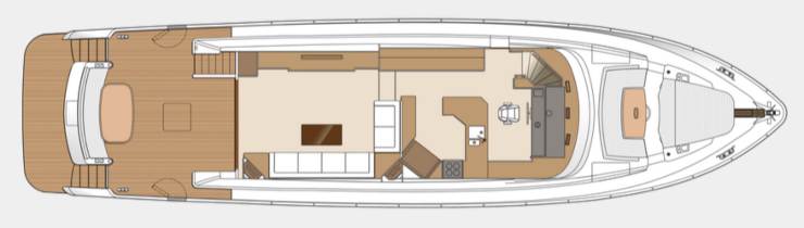 - Galley forward, a prua del main deck: soluzione apprezzata da chi preferisce mantenere il salone come grande ambiente living completamente dedicato al relax.