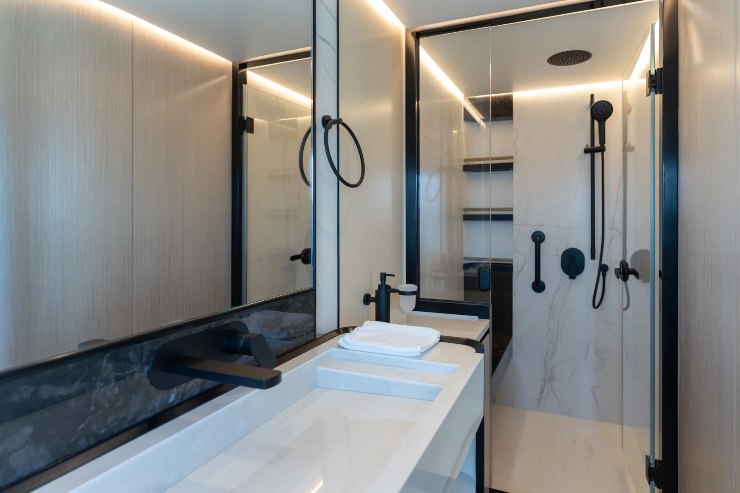 Il salone, in questa taglia, deve essere un “hub”: luce laterale, dinette fruibile, cucina con logica di servizio (aperta o parzialmente separabile a seconda delle preferenze) e accesso facile ai ponti esterni. Le cabine, poi, devono rispettare un principio di base: la master non è solo la più grande, è la più silenziosa e la più isolata. Questo dipende non solo dalla metratura, ma dalla posizione rispetto a sala macchine, dallo spessore delle paratie e dal trattamento acustico.
