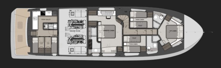 1) Più spazio “vendibile”: flybridge, beach area, apertura verso il mare. L’armatore vuole vivere fuori, e il charter vuole scenografie.