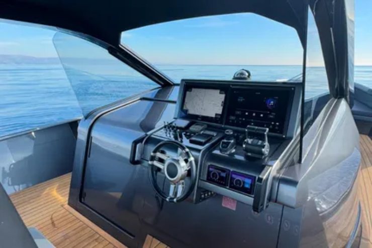 La strumentazione di navigazione, tipicamente basata su plotter multifunzione di grande formato, pilota automatico, log/eco/GPS integrati e videocamere di controllo, è disposta su una plancia di chiara ispirazione automotive, come mostrano molte foto: volante sportivo, sedute regolabili a sospensione, pulsantiere retroilluminate e componentistica in acciaio inox satinato o carbonio a vista. Completano il quadro connnettività Wi-Fi di bordo e predisposizione per sistemi di entertainment streaming.