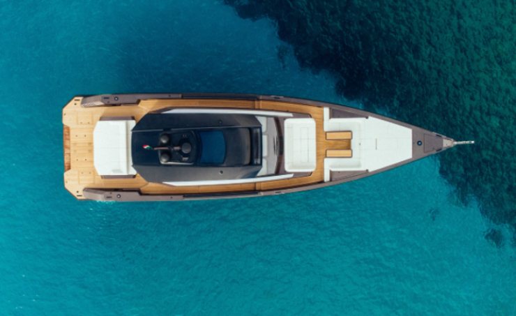Il pozzetto, il prendisole di prua, le zone relax modulari e la vasta piattaforma poppiera trasformano lo yacht in una lounge galleggiante, perfetta per party, cene, eventi privati o sessioni di navigazione sportiva.