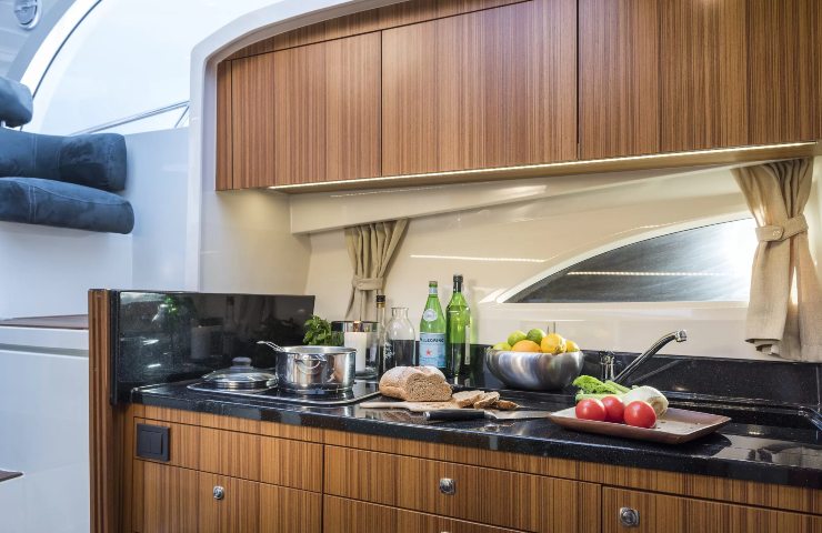 - Galley in basso ma connessa al pozzetto via un’apertura larga: la socialità è continua.