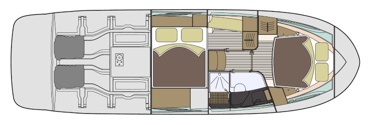 - Motori: 1× Volvo Penta D6 (fino a 440 hp) oppure 2× Volvo Penta D4 300/320 hp