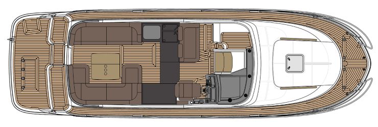 - Jeanneau NC 37: filosofia “cabinata” con salone interno; maggiore protezione indoor ma minore ampiezza del pozzetto all’aperto rispetto alla soluzione Marex.