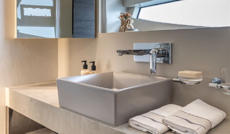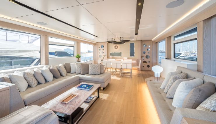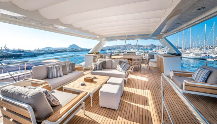 Nei contenuti multimediali di review, l’upper deck viene spesso indicato come punto di forza, con ampiezze più vicine a yacht di categoria superiore. Le possibilità di custom (bar, jacuzzi, wet galley, area prendisole) aumentano l’appeal per il charter premium.