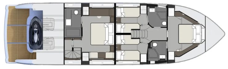 Il risultato è un quattro cabine “vero” sotto i 19 metri — un traguardo ingegneristico che pochi competitor raggiungono senza sacrificare stivaggi, passaggi o altezze interne.