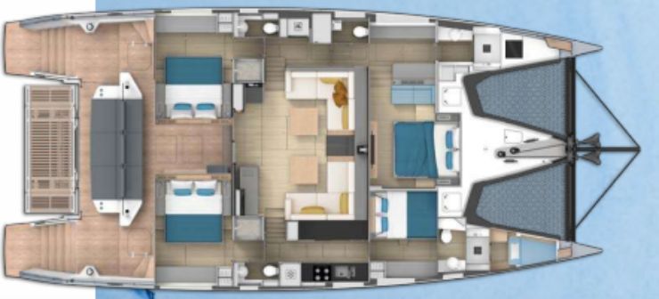 Lagoon SIXTY 5 – Di dimensioni leggermente inferiori (20,55 m LOA, 10 m di baglio), propone volumi interni generosi e un approccio più “industrializzato”, con motorizzazioni standard da 2 x 150 hp e dislocamento superiore (circa 40 t a vuoto). È estremamente confortevole ma meno orientato al “tailor-made” spinto tipico di Privilège.