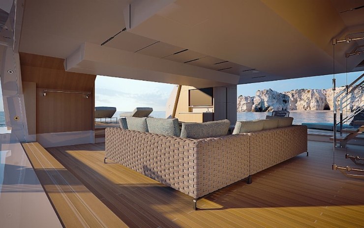 Rispetto a questi, il 44Alloy si distingue per la suite su tre livelli con piscina privata e per l’ampiezza del beach club apribile su tre lati, funzionalità che trasformano lo yacht in una villa sul mare con percorsi indipendenti per ospiti ed equipaggio — elementi distintivi nel value proposition.