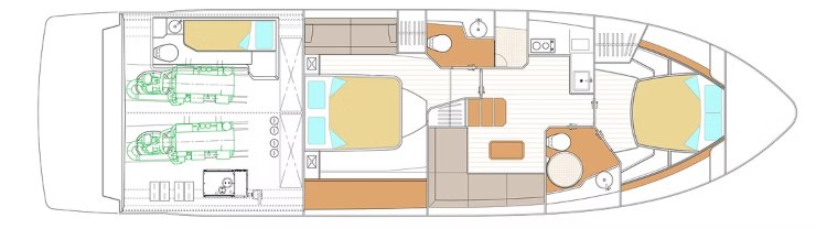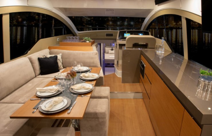 All’interno, il vero punto di forza è la flessibilità del layout. Il cantiere propone configurazioni a due, tre o persino quattro cabine, oltre a varianti che privilegiano living oppure galley aggiuntiva sul ponte inferiore. Questa elasticità progettuale è rara in modo così spinto nel segmento e consente di adattare la barca a profili d’uso molto diversi: coppia armatoriale, famiglia con figli, charter giornaliero premium, weekend con ospiti, o impiego misto.