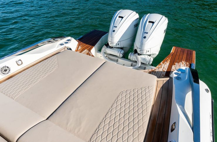 Il passaggio sull’onda è morbido, asciutto, privo di vibrazioni indesiderate. La carena restituisce sicurezza e fluidità, e anche con mare di prua la barca non accenna a colpi o sbandamenti. È un’imbarcazione capace di combinare la precisione di una sportiva con il comfort di un cruiser di lusso.