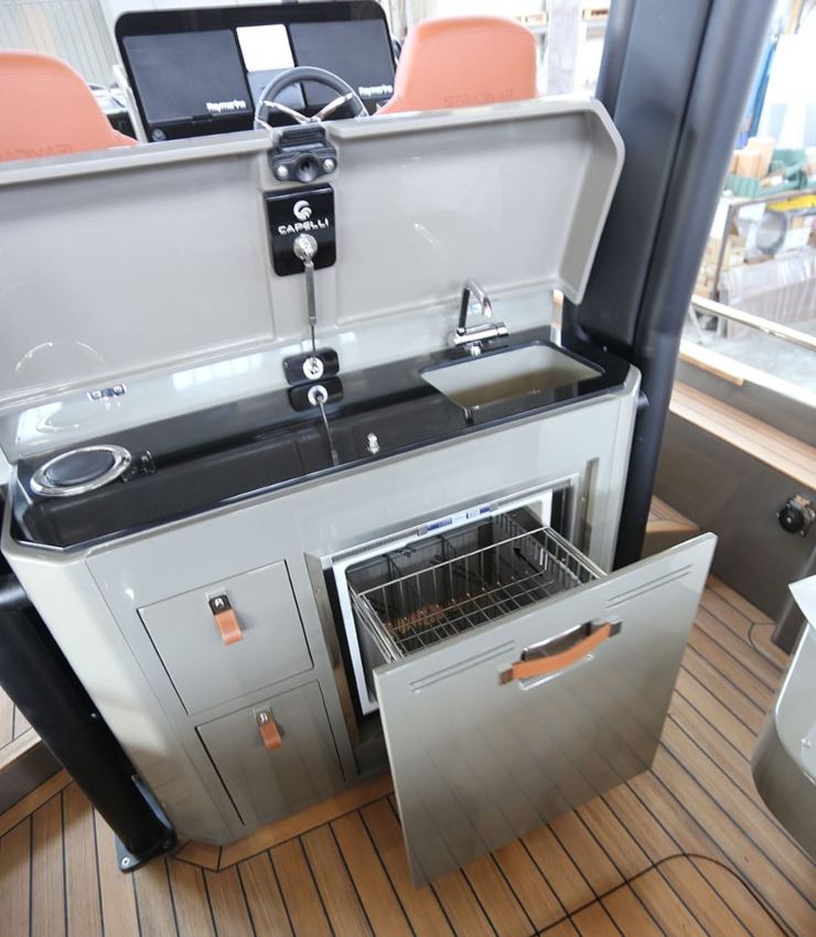 A bordo dello Stradivari 43 la tecnologia diventa discreta ma onnipresente. La plancia di comando, moderna e lineare, integra due display multifunzione da 16”, radar a lungo raggio, autopilota e connessione NMEA 2000. Il sistema domotico centrale permette di controllare con un solo tocco luci, climatizzazione, pompe e musica. Tutte le funzioni sono accessibili anche da smartphone, grazie alla connessione Wi-Fi di bordo.