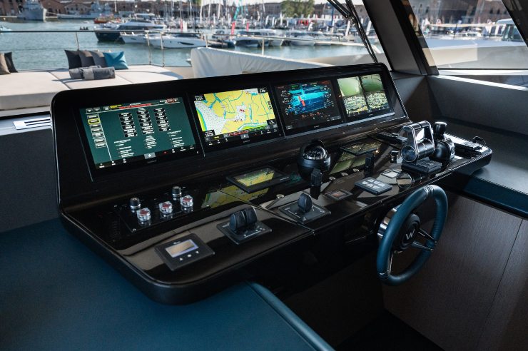 Il cervello del WiderCat 92 è il Power & Vessel Management: un layer di supervisione che orchestra generatori, batteria, inverter, motori elettrici e carichi hotel. L’interfaccia utente è progettata per il dual target comandante/armatore, con pannelli sinottici chiari, fail-safe e log degli eventi. La navigazione si appoggia a suite glass-bridge di ultima generazione con chartplotter multi-touch, doppi radar, autopilot evoluti e sensori ridondati.