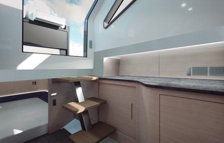 – un piano sottocoperta completo, con due cabine e bagno con doccia separata, che lo avvicina ai cruiser tradizionali di pari misura.